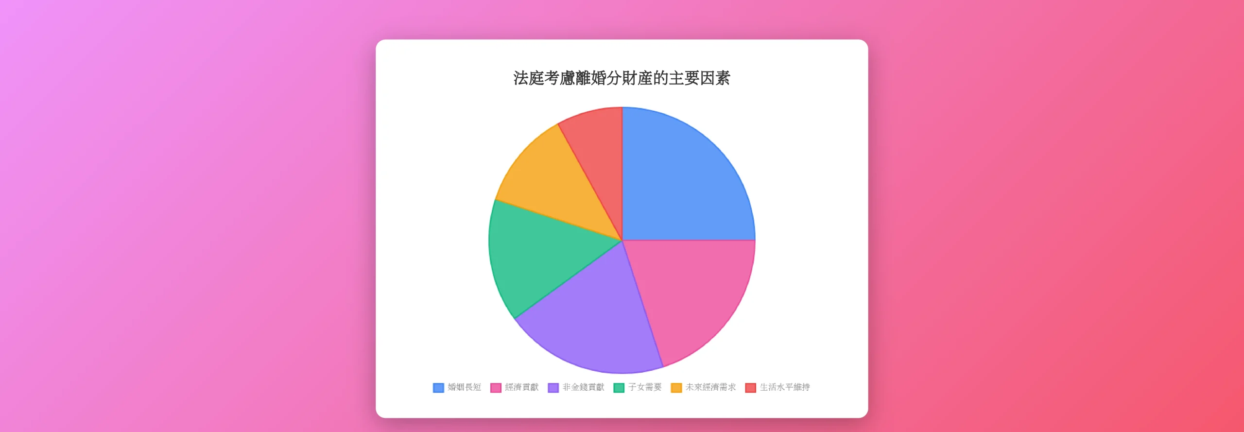 法官處理離婚分身家案件時,會根據多個因素去判斷,包括雙方收入、婚姻年期、各自對家庭嘅貢獻、生活質素、未來需要等等。換言之,離婚唔係簡單用計數機一分為二,而係一場講求「公平而唔係平均」嘅判斷。